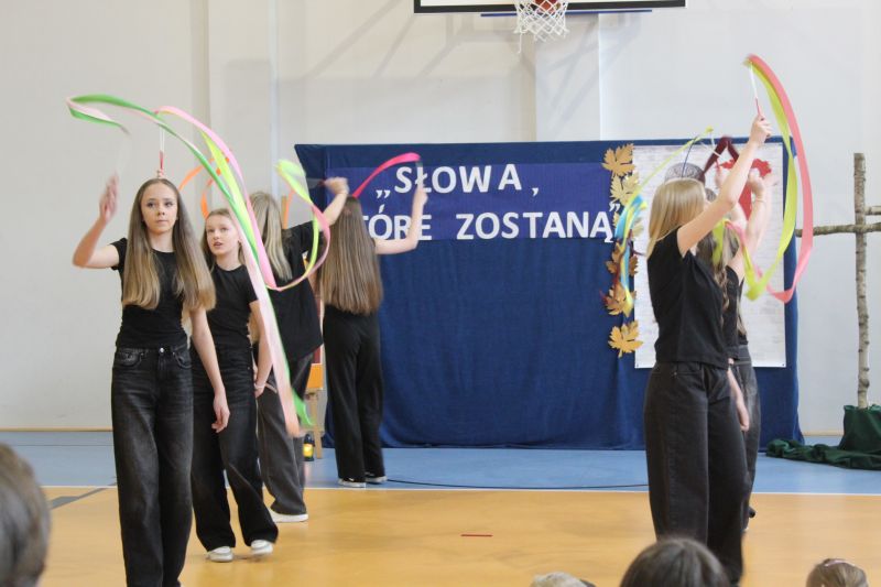Chętni uczniowie z klasy VII i VIII przybliżyli młodszym kolegom i koleżankom życie, twórczość pisarza oraz przesłanie, które – choć napisane przed wiekami – nadal pozostaje żywe i aktualne.  Podczas wydarzenia sięgnęliśmy do treści zawartych w podstawie programowej i przypomnieliśmy, czym jest fraszka, tren czy pieśń. Usłyszeliśmy najpopularniejsze utwory czarnoleskiego poety takie jak: „Na dom w Czarnolesie”, „O żywocie ludzkim”, „Na zdrowie”, „Nie porzucaj nadzieje” czy fragmentów „Pieśni świętojańskiej o Sobótce”, dzięki której zabraliśmy ze sobą jeszcze kilka okruchów lata. Dziewczęta ubrane w białe stroje, z głowami przyozdobionymi wiankami, przybliżyły nam ludowy rytuał magicznych wróżb i przepowiedni. Czytanie zakończyło się pieśnią wyrażającą zachwyt nad polską wsią - „Wsi spokojna, wsi wesoła!/